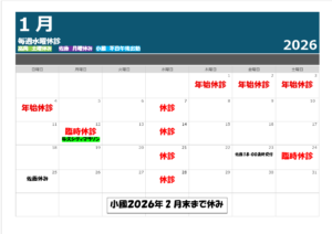 1月の施術予定になります。