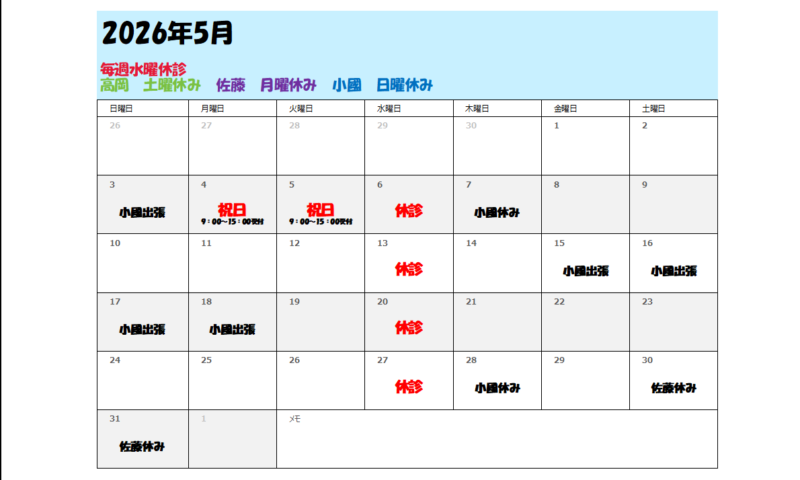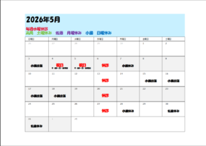 5月の施術予定になります。